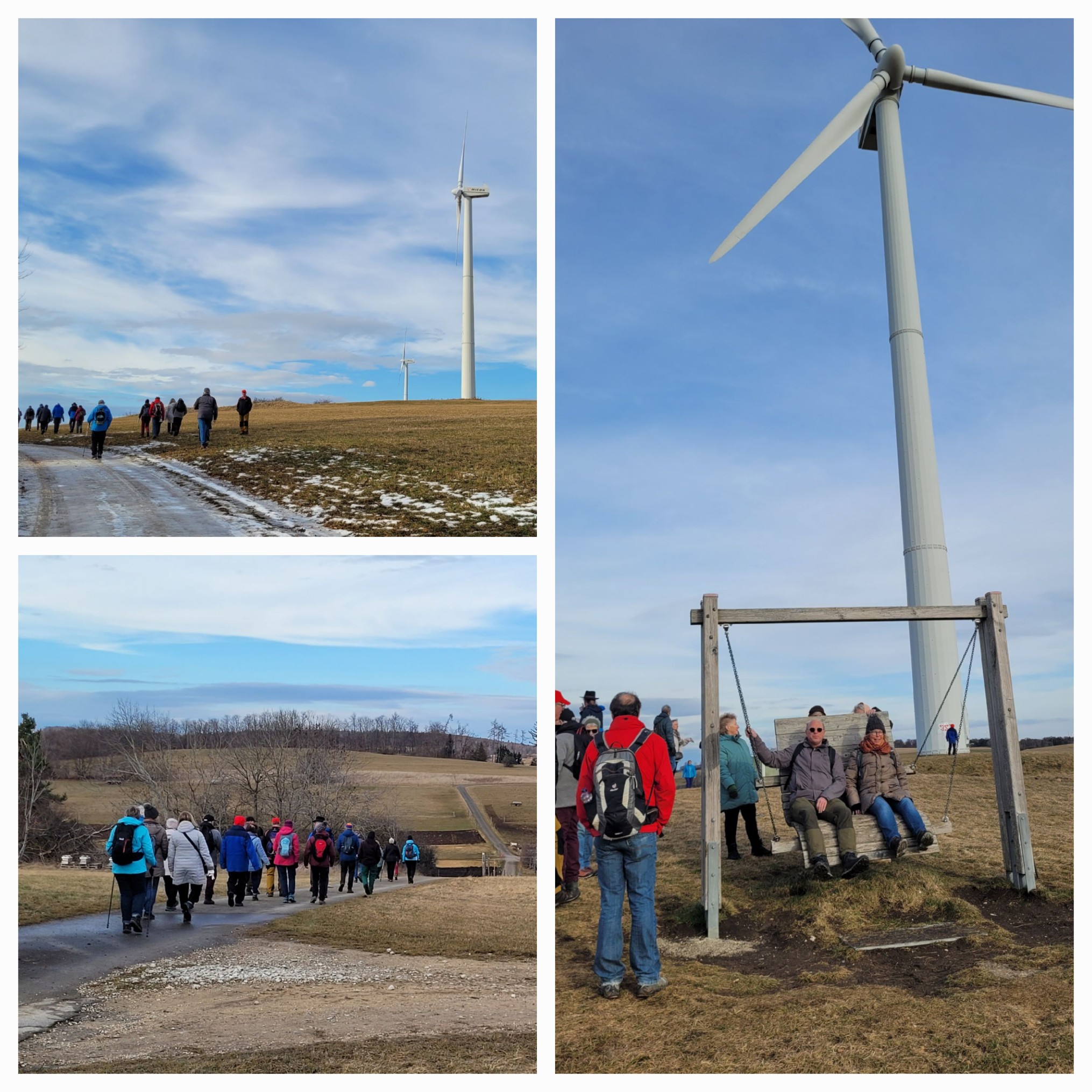 Zu Beginn führte der Weg gemütlich bergauf zur flachen Wiesenkuppe des 820 Meter hohen Himmelbergs. Dort stehen seit 1995 drei jeweils 60 Meter hohe Windräder, die ersten ihrer Art in Baden-Württemberg. Von diesem Aussichtspunkt bot sich ein beeindruckender Rundblick über die Schwäbische Alb. Bei klarer Sicht reicht der Blick nach Nordwesten über das Neckarland bis zum Nordschwarzwald und nach Süden sogar bis zu den Alpen.Anschließend ging es entspannt bergab nach Willmandingen. Dort sorgte eine kurze Begegnung mit zwei Alpakas, die gerade ausgeführt wurden, für ein heiteres und unerwartetes Highlight. In einem weiten Bogen führte der Weg weiter unterhalb des Himmelbergs zurück in Richtung Melchingen. Am Ortsrand vorbei marschierten wir ins Frenzental, wo es leicht bergauf ging und wir schließlich die Lauchertquelle passierten. Über bequeme Feldwege kehrten wir gemächlich zum Ausgangspunkt zurück.
